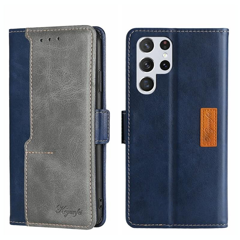 Για Samsung Galaxy S22 Ultra αντίθεση χρώμα πλευρά πόρπη δερμάτινη θήκη τηλεφώνου (μπλε + γκρι)