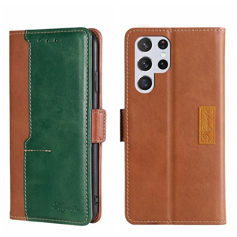 Για Samsung Galaxy S22 Ultra αντίθεση χρώμα πλευρά πόρπη δερμάτινη θήκη τηλεφώνου (ανοιχτό καφέ + πράσινο)