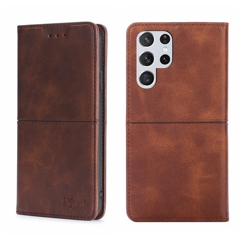 Για Samsung Galaxy S22 Ultra Cow Texture μαγνητική οριζόντια Flip δέρμα τηλέφωνο υπόθεση (σκούρο καφέ)