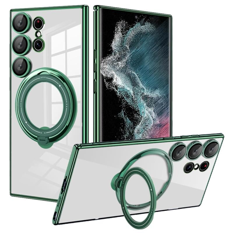 Θήκη κινητού τηλεφώνου με ηλεκτρολυτική επίστρωση MagSafe, περιστροφή 360 μοιρών, αντικραδασμική για Samsung Galaxy S22 Ultra (Μπλε)