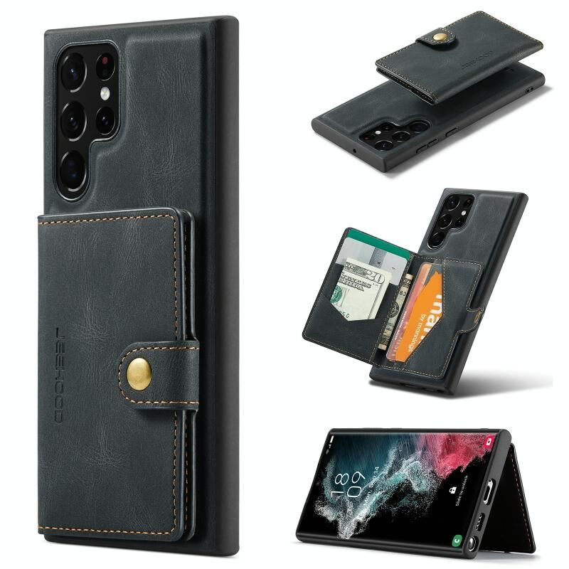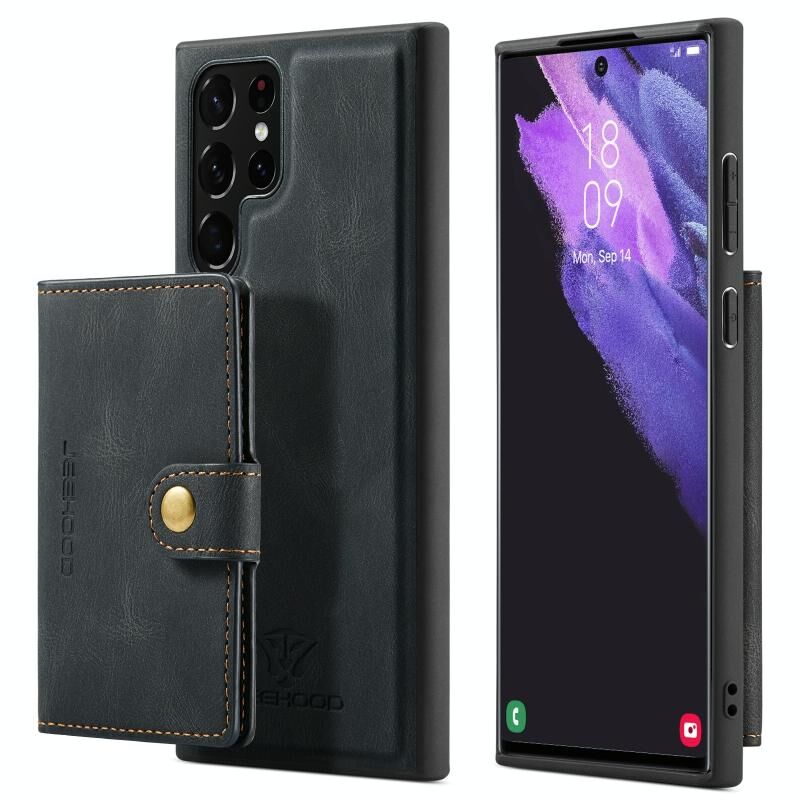 Για Samsung Galaxy S22 Ultra JEEHOOD Ρετρό μαγνητική αποσπώμενη θήκη τηλεφώνου (μαύρο) (JEEHOOD)