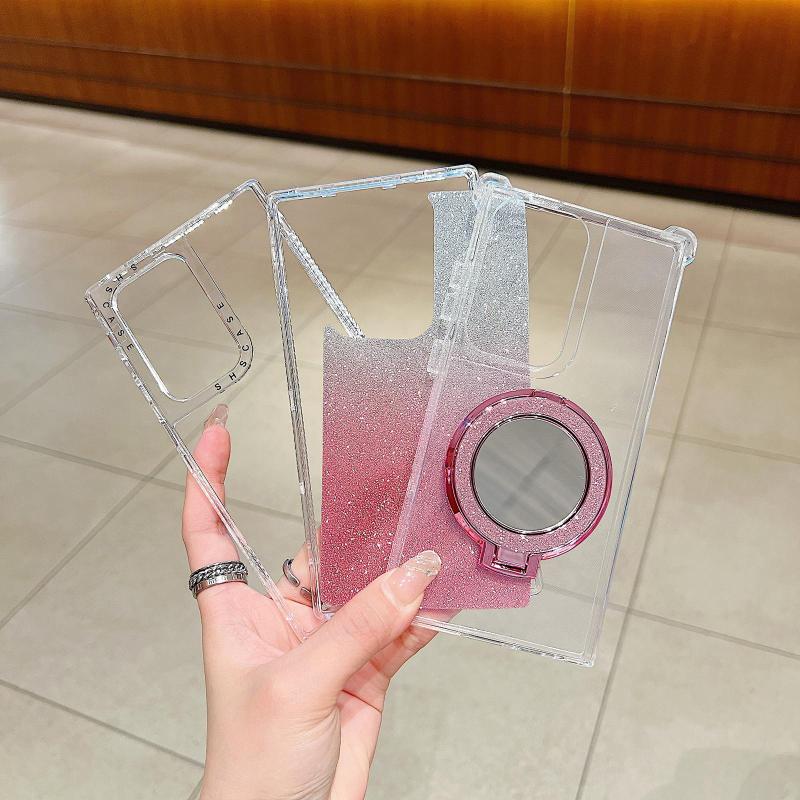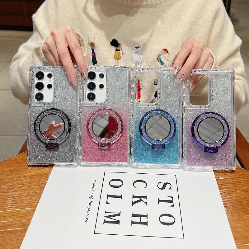 5. Σχέδιο Αναδιπλούμενης Στήριξης με Καθρέφτη: Το πίσω κάλυμμα διαθέτει εφέ καθρέφτη για γρήγορη περιποίηση και η αναδιπλούμενη στήριξη επιτρέπει την εύκολη χρήση του τηλεφώνου χωρίς χέρια.