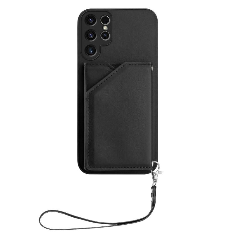 Για Samsung Galaxy S22 Ultra Skin Feel τέσσερις υποδοχές κάρτα τηλέφωνο υπόθεση με λουράκι καρπού (μαύρο)