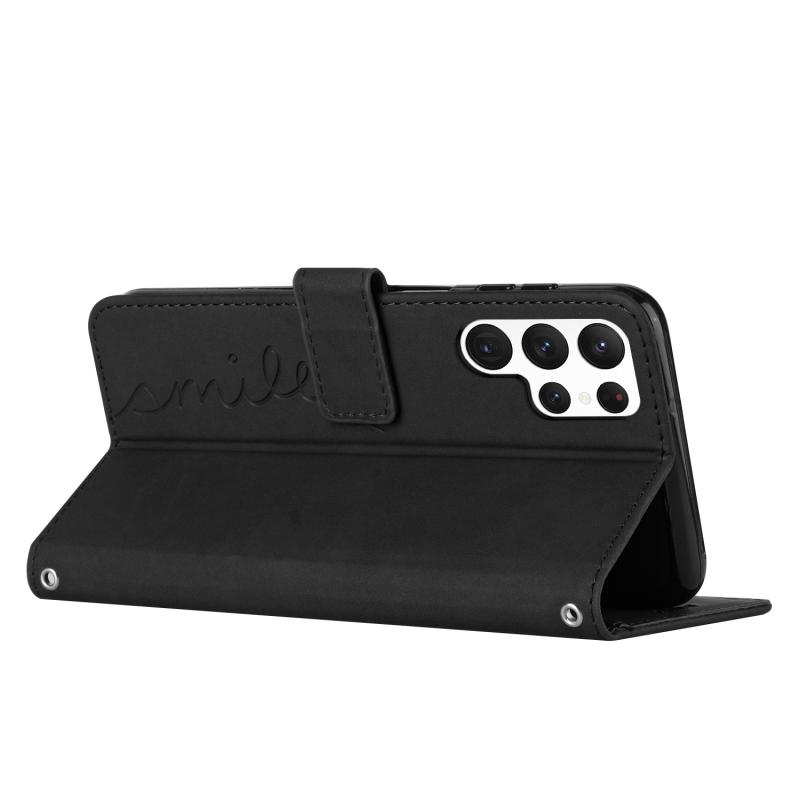 Θήκη τηλεφώνου Samsung Galaxy S22 Ultra με δερμάτινο σχέδιο καρδιάς και αίσθηση δέρματος, με κορδόνι (Καφέ)