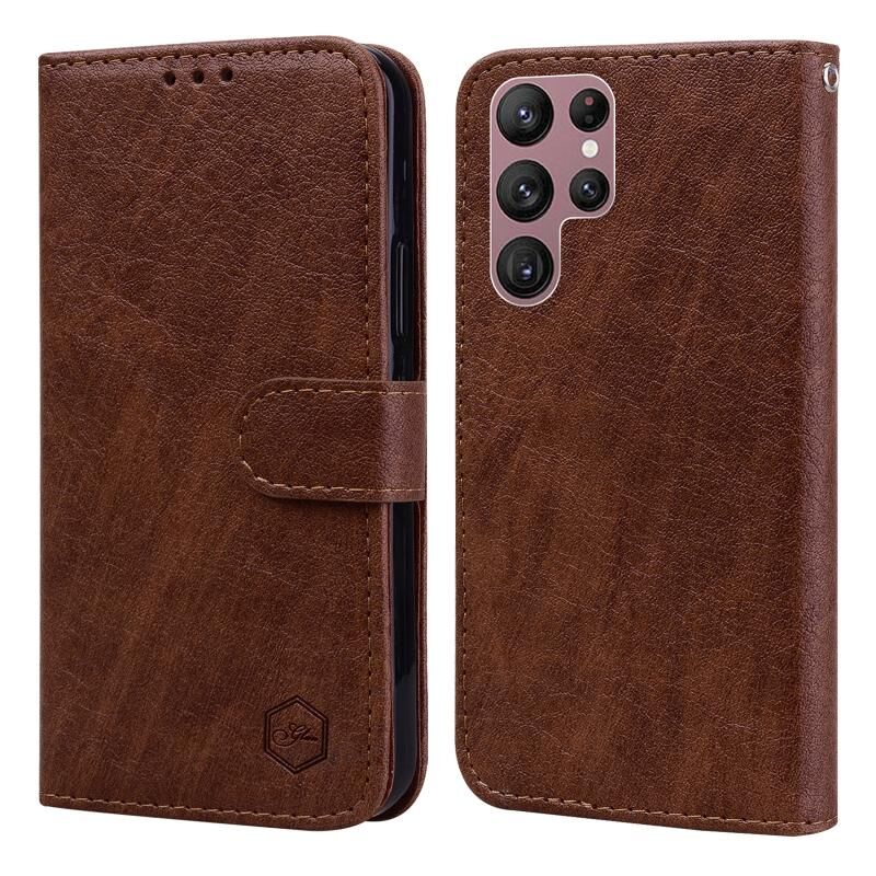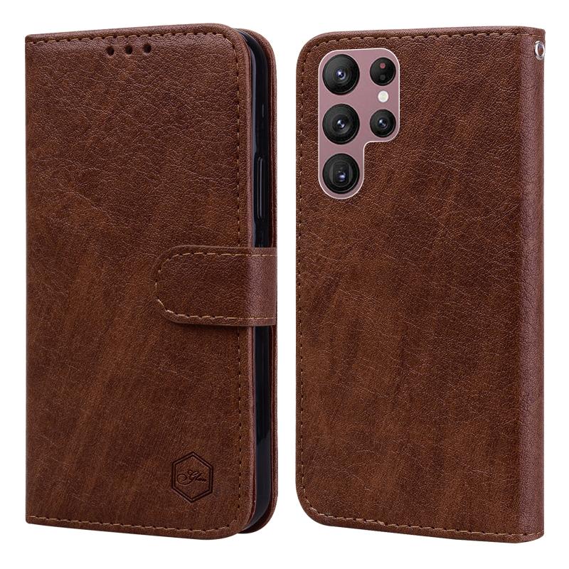 Θήκη κινητού τηλεφώνου Samsung Galaxy S22 Ultra με υφή δέρματος λαδιού PU + TPU (Σκούρο Μπλε)