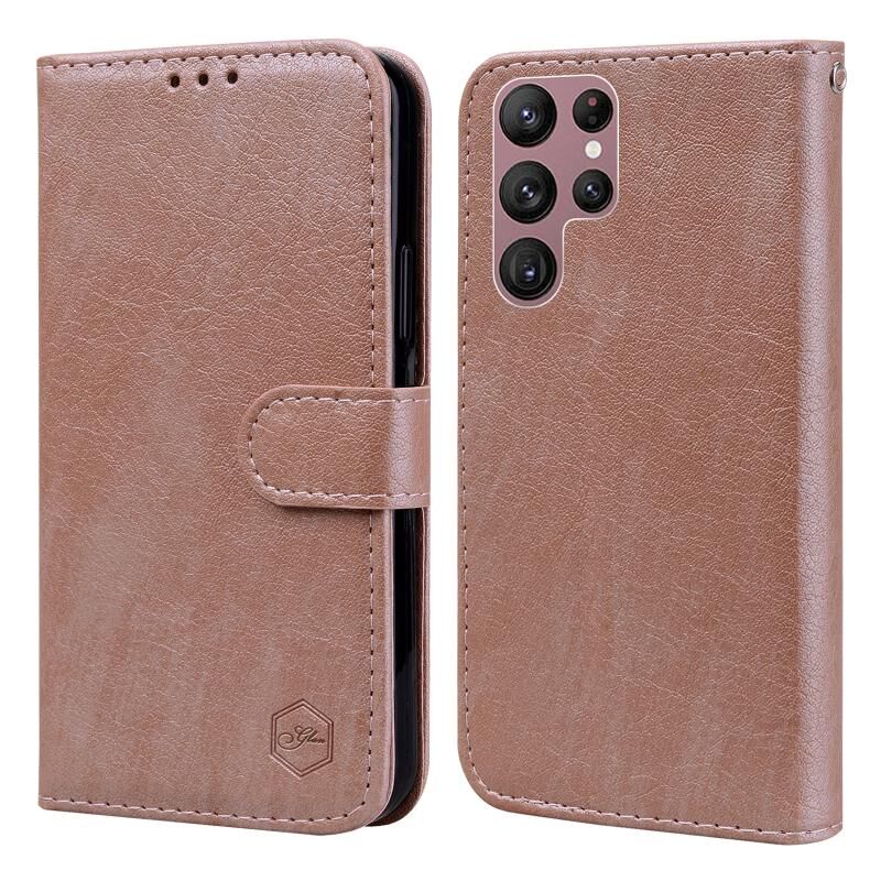 Θήκη κινητού τηλεφώνου Samsung Galaxy S22 Ultra με υφή δέρματος λάδι και υλικό PU + TPU (Σαμπάνια)