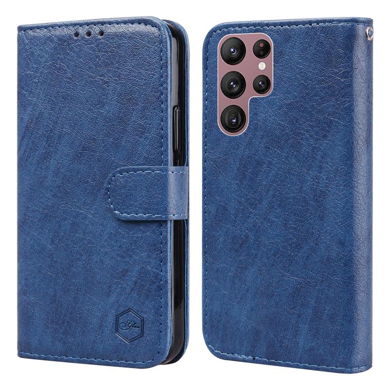 For Samsung Galaxy S22 Ultra Skin Feeling Oil Leather Texture PU + TPU Phone Case(Dark Blue)