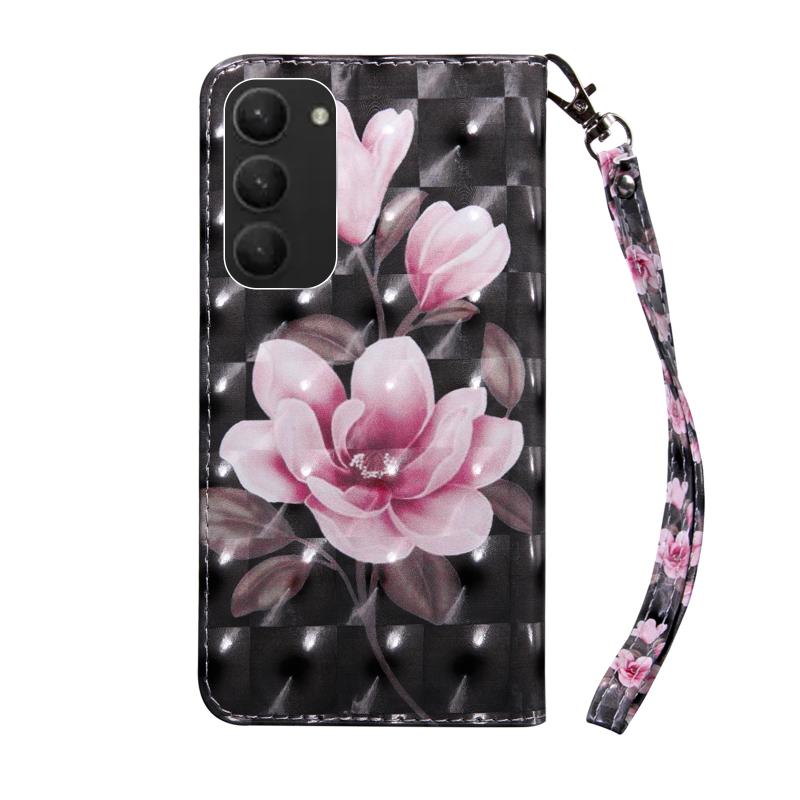 Θήκη τηλεφώνου από δέρμα με τρισδιάστατη ζωγραφική για Samsung Galaxy S23+ 5G (Χρυσή Παπλωματούλα Πεταλούδα)