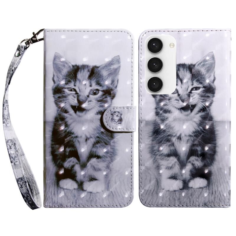 Θήκη τηλεφώνου Samsung Galaxy S23 5G με δερμάτινη 3D βαφή (Γάτα με χαμόγελο)