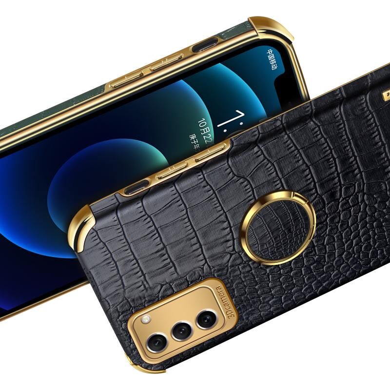 Θήκη τηλεφώνου για Samsung Galaxy S23 5G με ηλεκτρολυτική επίστρωση, υφή κροκόδειλου και βάση στήριξης (Λευκό)