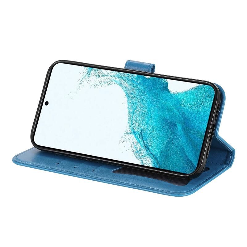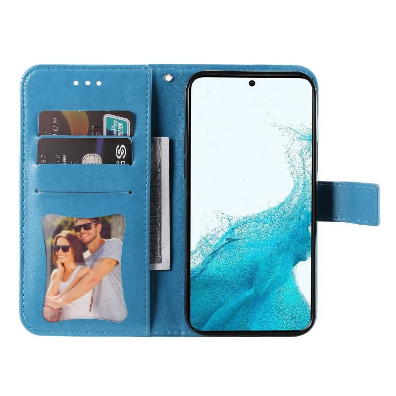 Θήκη τηλεφώνου δερμάτινη με ανάγλυφα 7 πέταλα λουλουδιών για Samsung Galaxy S23 5G (Χρυσορόζ)