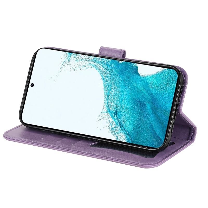 Θήκη τηλεφώνου δερμάτινη με ανάγλυφα 7 πέταλα λουλουδιών για Samsung Galaxy S23+ 5G (Χρυσό Ρόδι)
