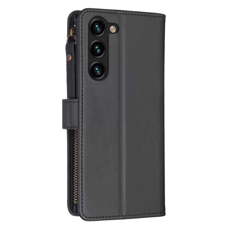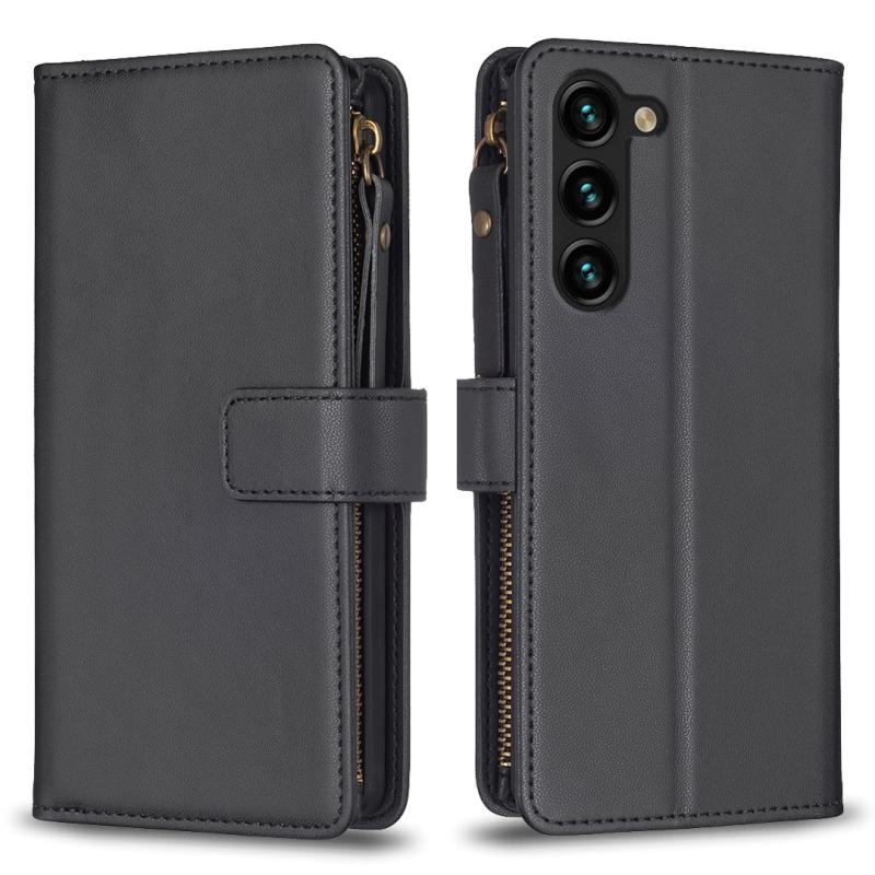 Θήκη τηλεφώνου Samsung Galaxy S23+ 5G, Δερμάτινη θήκη τύπου flip με φερμουάρ και 9 θέσεις για κάρτες (Μαύρο)