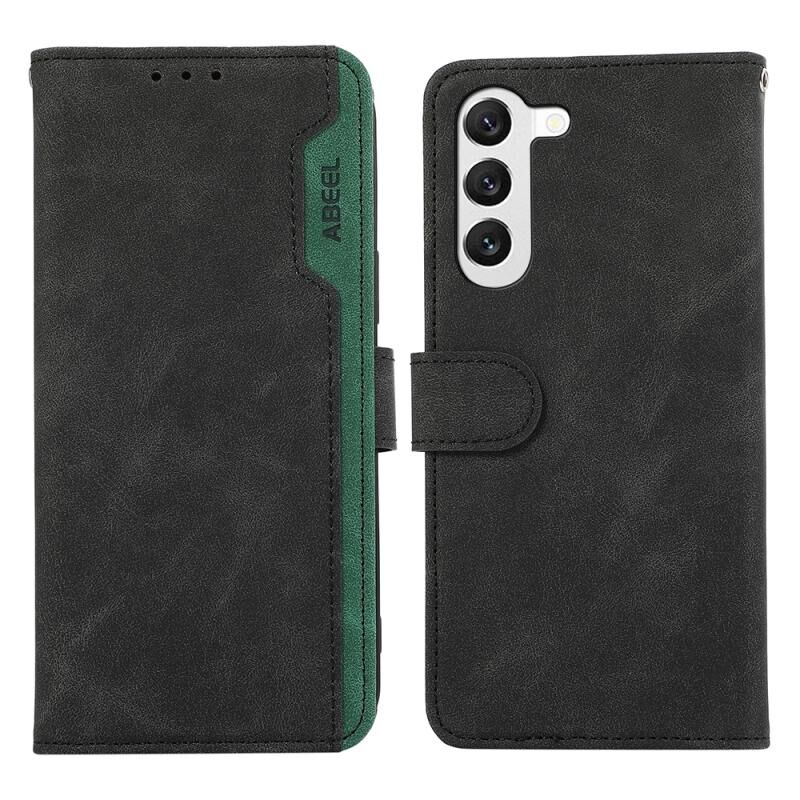 Θήκη τηλεφώνου Samsung Galaxy S23 5G ABEEL με μαγνητικό κλείσιμο, δερμάτινη, με χρωματικούς συνδυασμούς και προστασία RFID (Ροζ-Κυανό)