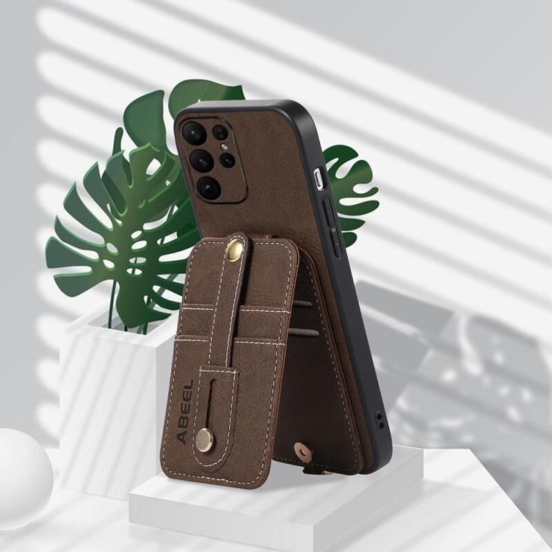 Θήκη κινητού τηλεφώνου Samsung Galaxy S23+ 5G ABEEL από PU με υφή δέρματος λυτσί (Χακί)