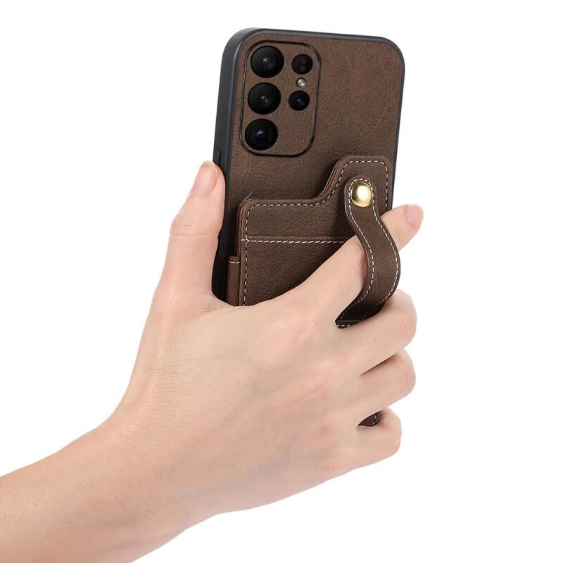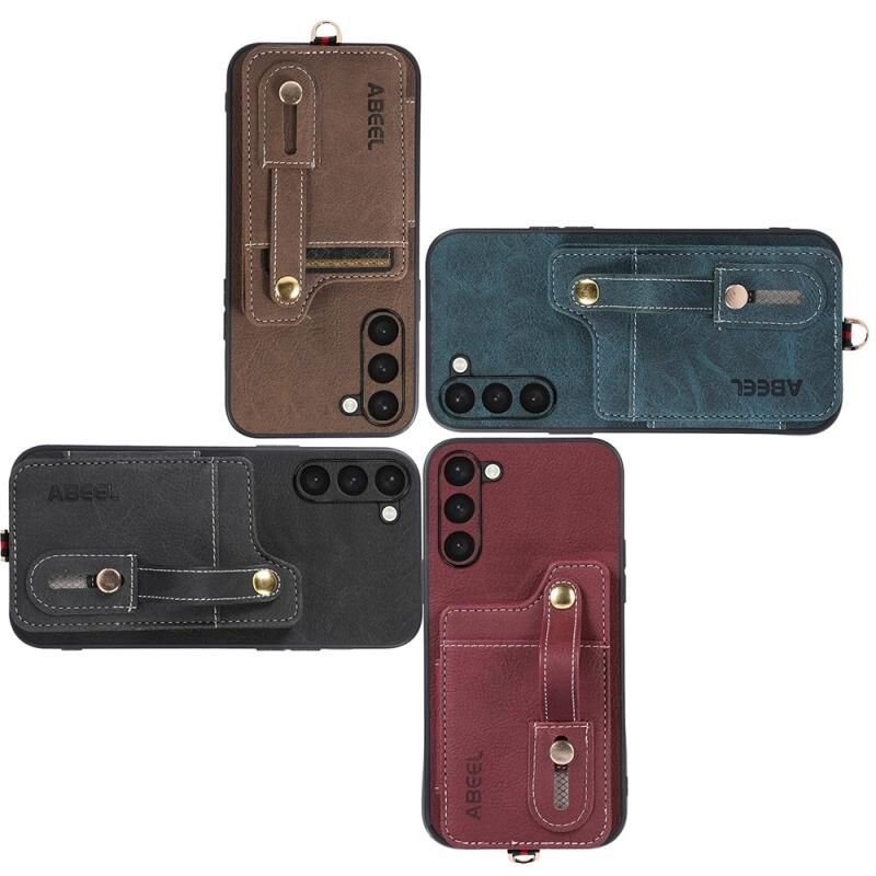 Θήκη κινητού τηλεφώνου Samsung Galaxy S23 5G ABEEL με υφή δέρματος λύτσι και κάρτες, από PU (Μαύρο)