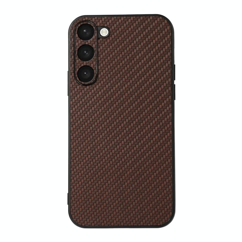 Για Samsung Galaxy S23 + 5G Ακριβής τρύπα ανθρακονήματα υφή PU υπόθεση τηλεφώνου (καφέ)