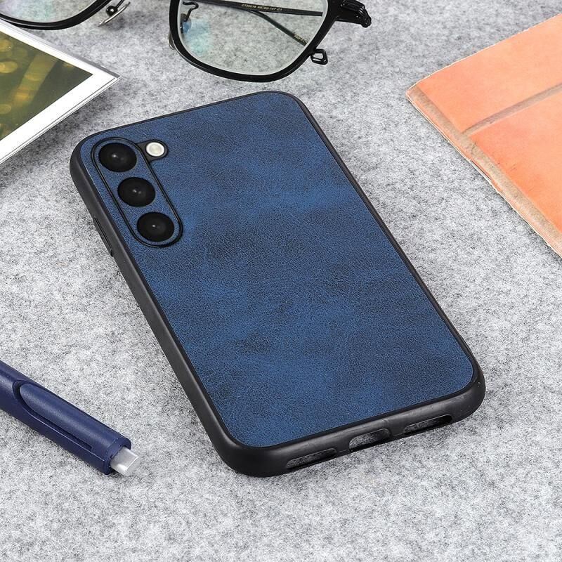 Για Samsung Galaxy S23 + 5G Ακριβής τρύπα δύο χρωμάτων μοσχάρι Υφή PU υπόθεση τηλεφώνου (μπλε)