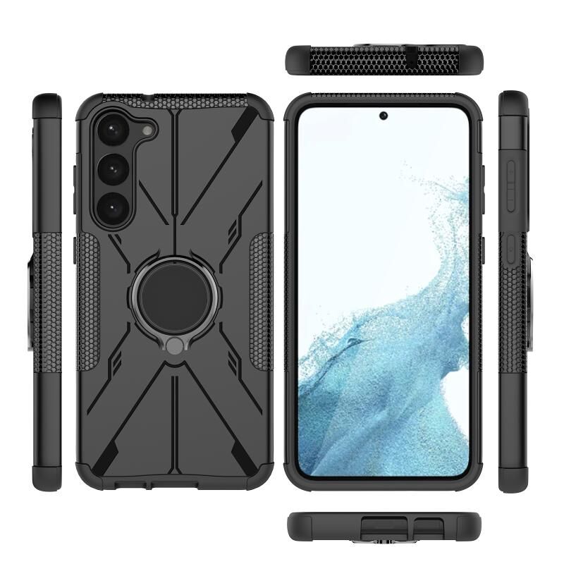 Για Samsung Galaxy S23+ 5G Armor Bear Shockproof PC + TPU τηλέφωνο υπόθεση με δαχτυλίδι (μαύρο)