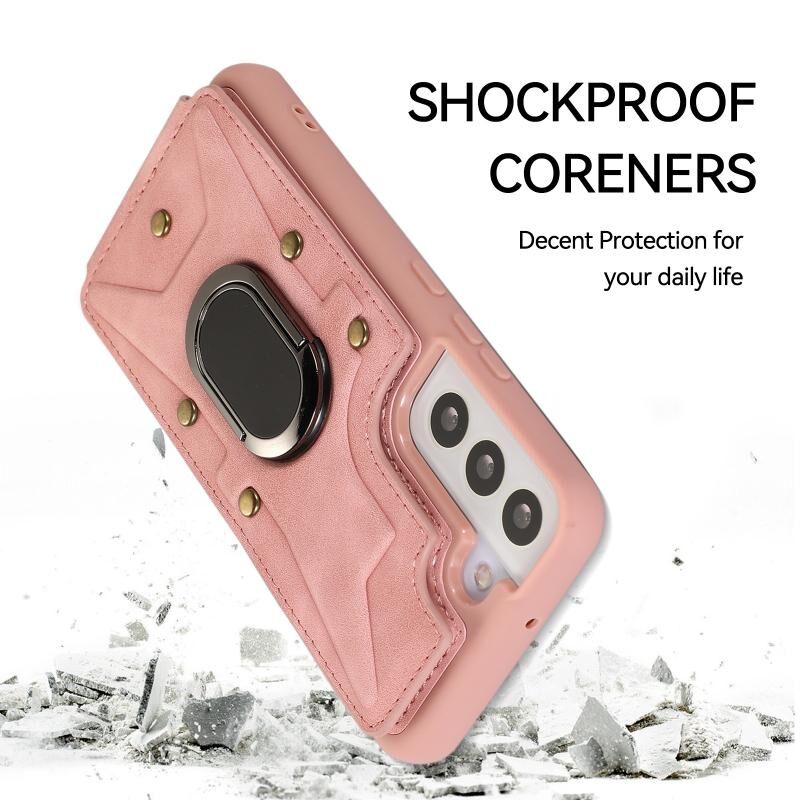 Για Samsung Galaxy S23+ 5G θωράκιση δαχτυλίδι πορτοφόλι πίσω κάλυμμα τηλεφώνου υπόθεση (ροζ)