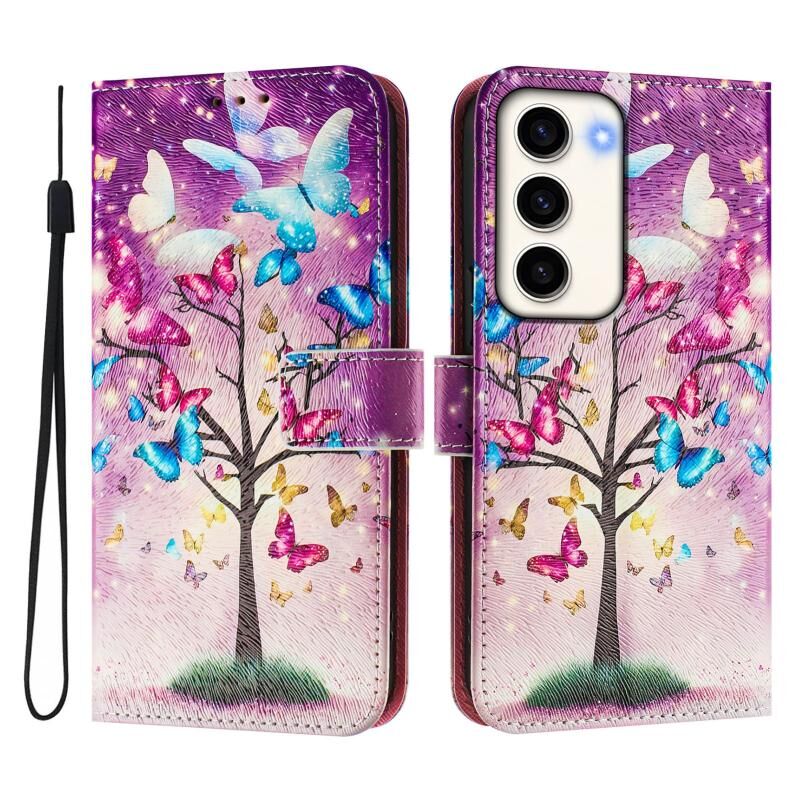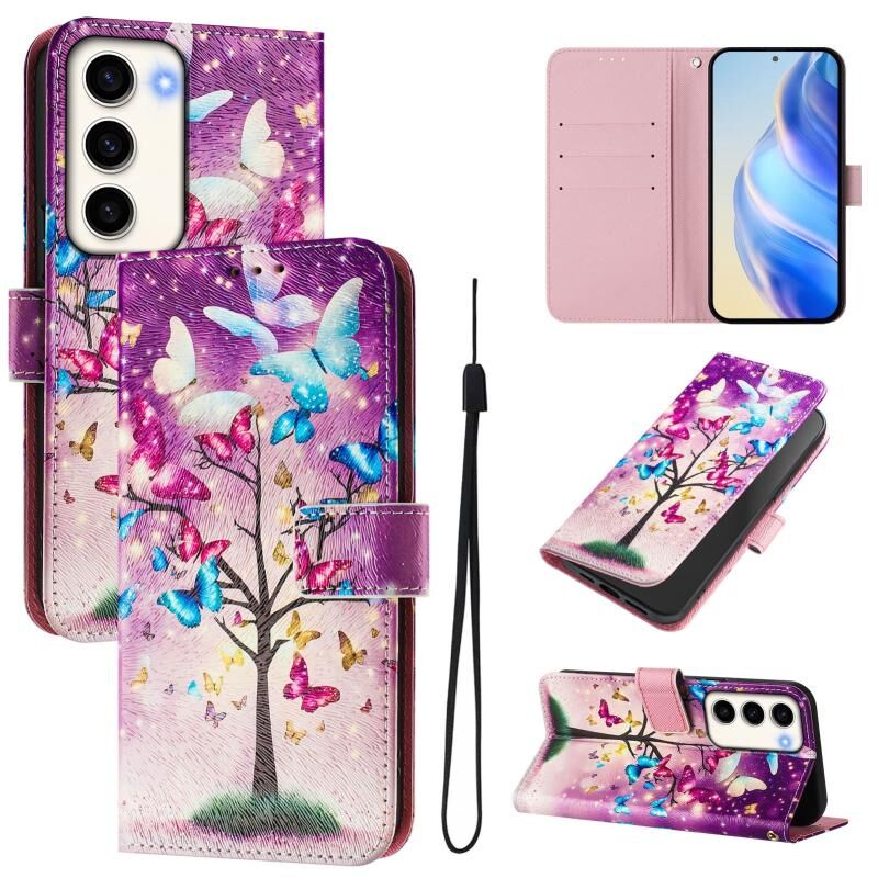 For Samsung Galaxy S23 5G Art Colored Drawing Pattern Leather Phone Case(Butterfly branch)