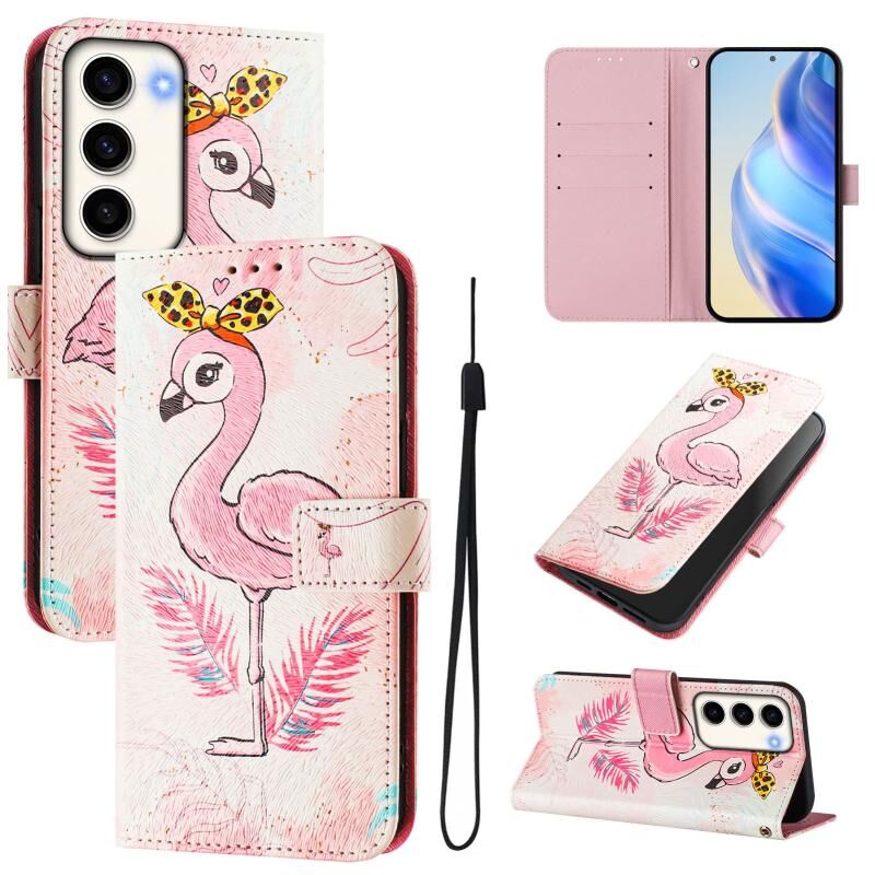 For Samsung Galaxy S23 5G Art Colored Drawing Pattern Leather Phone Case(Flamingo)