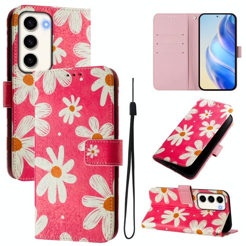 For Samsung Galaxy S23 5G Art Colored Drawing Pattern Leather Phone Case(Pink daisy)