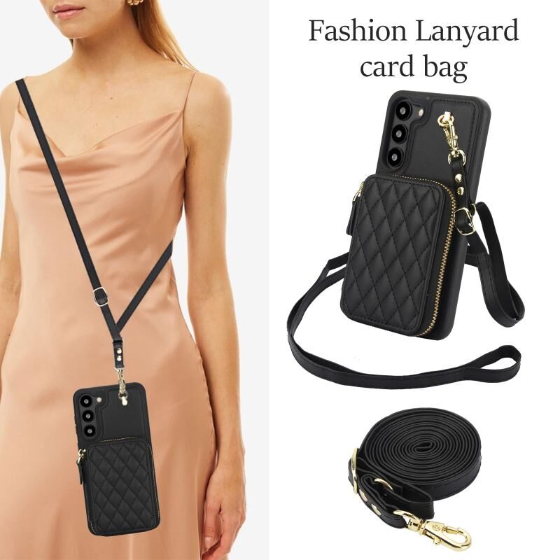 Θήκη κινητού τηλεφώνου για Samsung Galaxy S23+ 5G AwQuer Crossbody με φερμουάρ, πορτοφόλι από δέρμα με ρόμβους (Μαύρο) (Awquer)