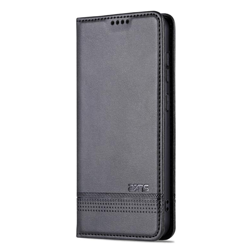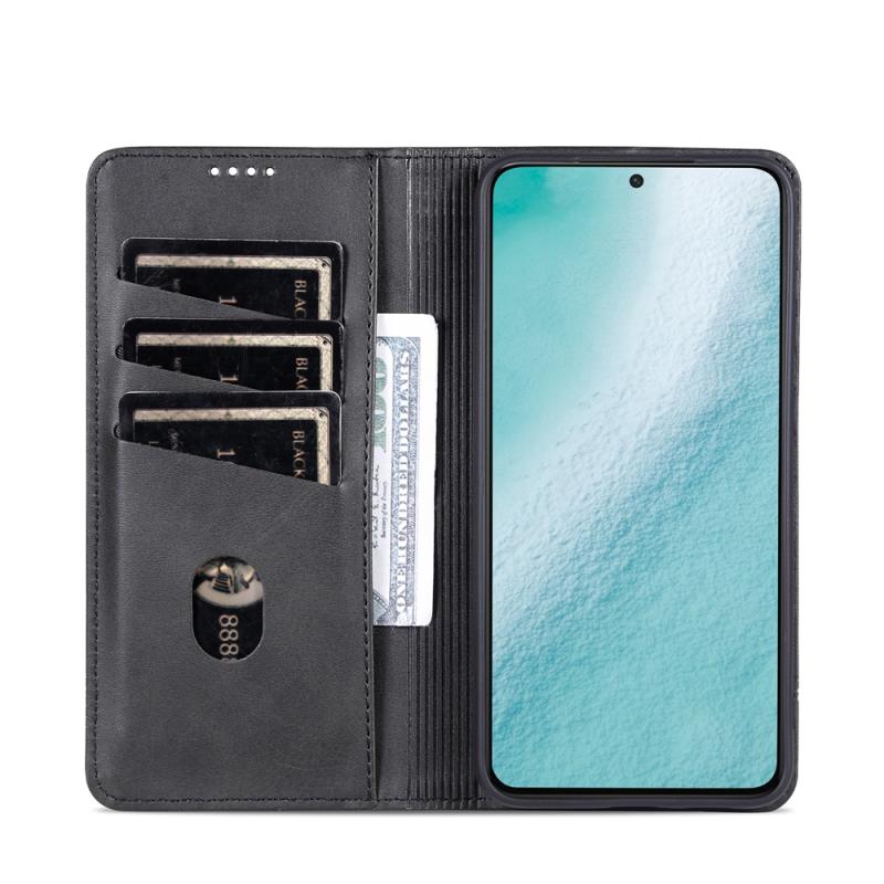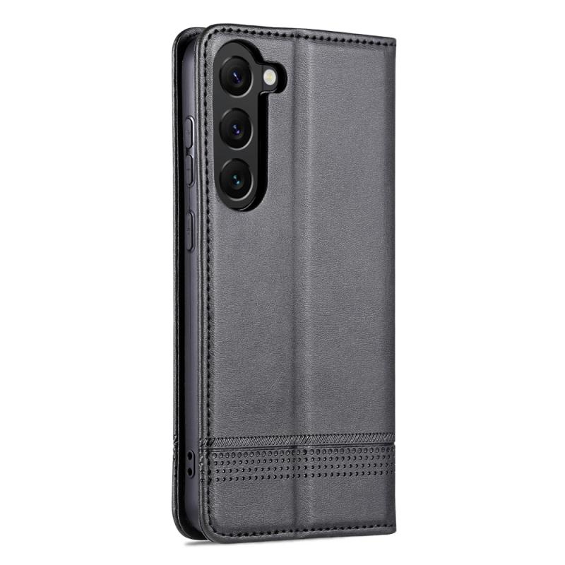 Θήκη τηλεφώνου Samsung Galaxy S23+ 5G AZNS, δερμάτινη, τύπου flip, με μαγνητικό κλείσιμο και υφή μοσχαριού (Σκούρο Καφέ) (Μαύρο)