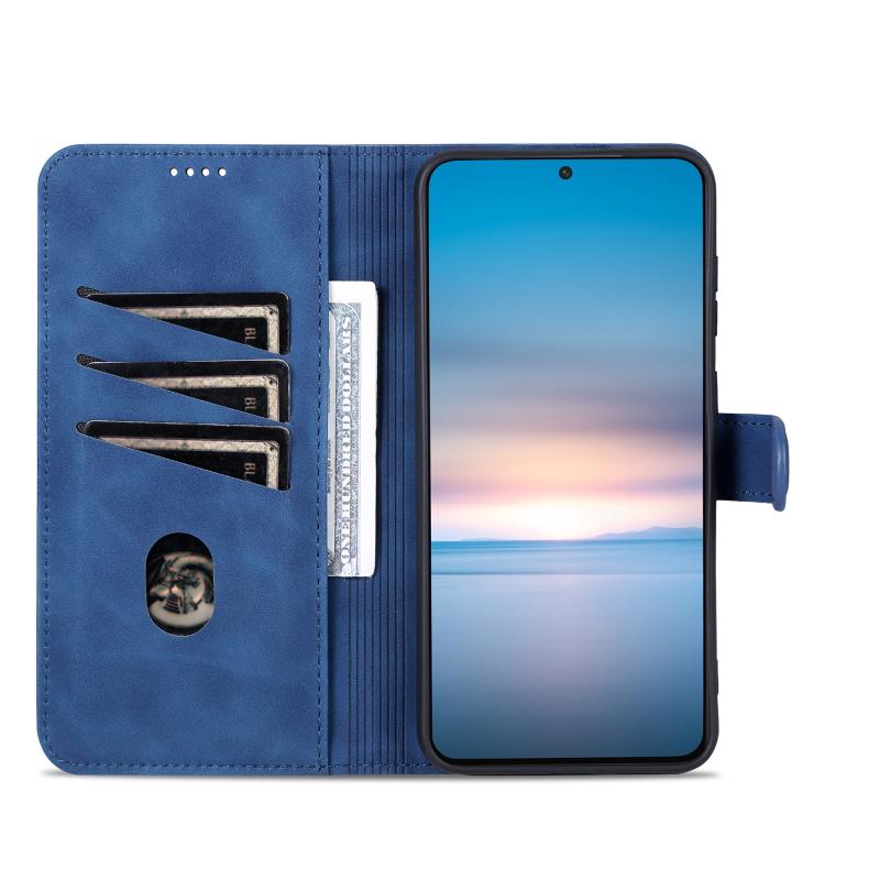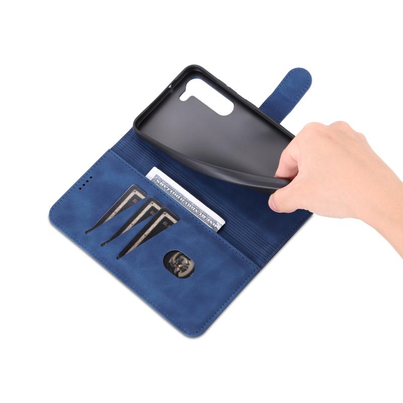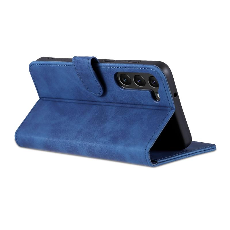 Θήκη τηλεφώνου Samsung Galaxy S23+ 5G AZNS, δερμάτινη, τύπου flip, με υφή μοσχαρίσιου δέρματος (Μπλε) (Μπλε)