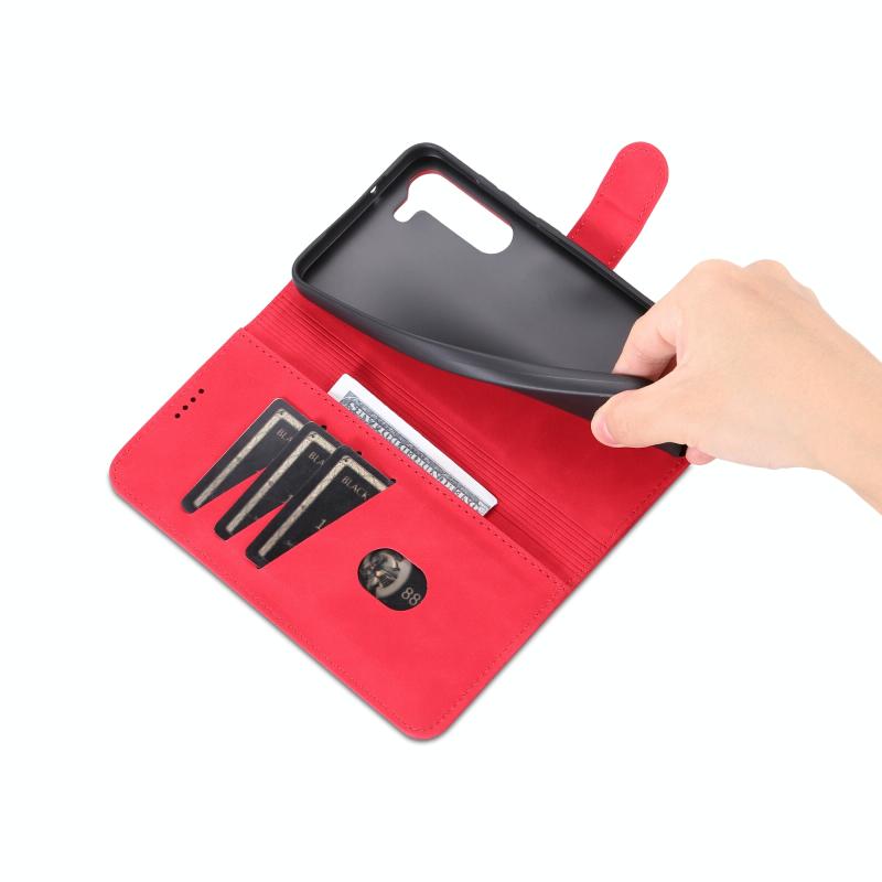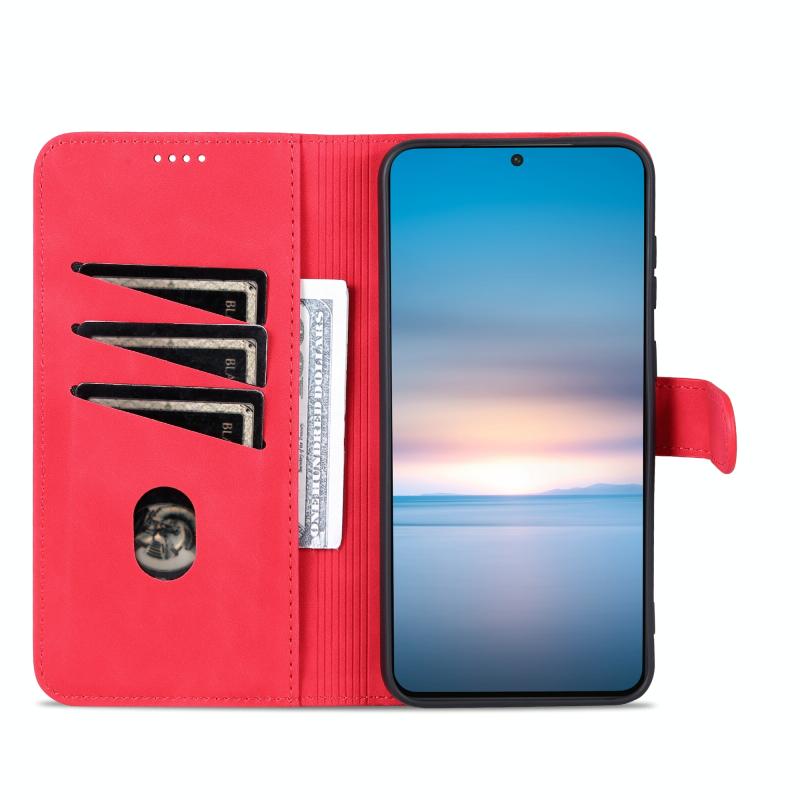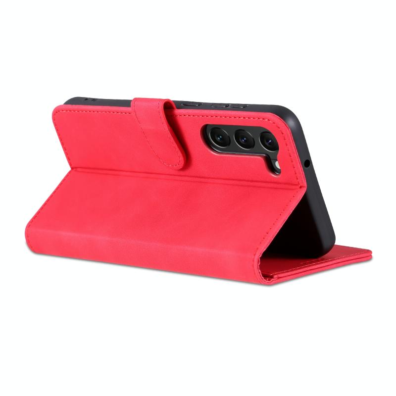 Θήκη τηλεφώνου Samsung Galaxy S23+ 5G AZNS, δερμάτινη, τύπου flip, με υφή μοσχαρίσιου δέρματος (Μπλε) (Κόκκινο)
