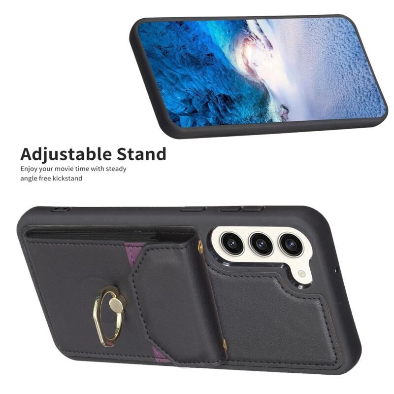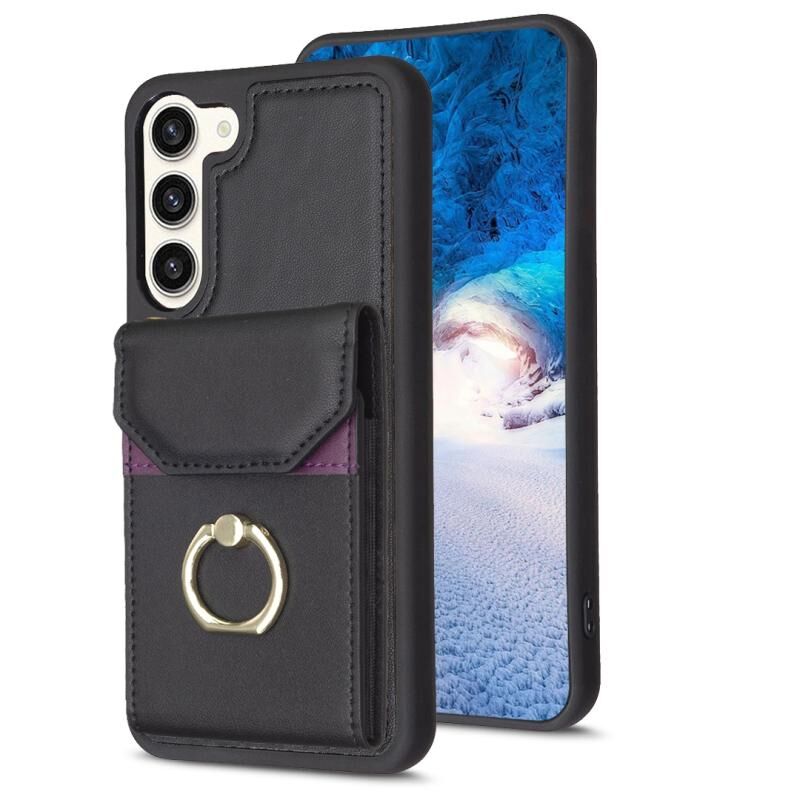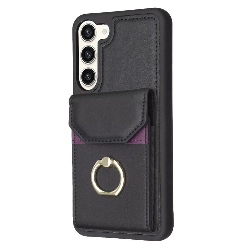 Για Samsung Galaxy S23 + 5G BF29 όργανο κάρτα τσάντα τσάντα δαχτυλίδι κάτοχος τηλέφωνο υπόθεση (μαύρο)