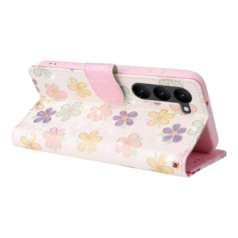 Θήκη τηλεφώνου Samsung Galaxy S23 5G από δέρμα με τεχνολογία RFID και σχέδιο μπρονζέ (Ανθισμένο Λουλούδι)