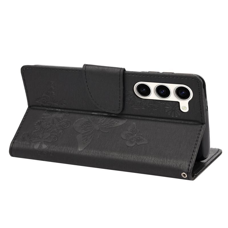 Θήκη τηλεφώνου Samsung Galaxy S23+ 5G, δερμάτινη οριζόντια με ανάγλυφο σχέδιο πεταλούδας (Καφέ)