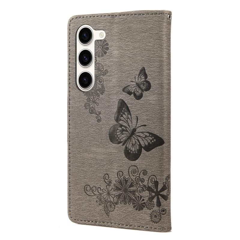 Θήκη τηλεφώνου Samsung Galaxy S23 5G, δερμάτινη οριζόντια με ανάγλυφο σχέδιο πεταλούδας (Καφέ)