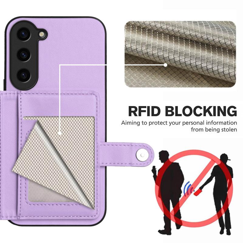 For Samsung Galaxy S23+ 5G Button Card Bag RFID Anti-theft Phone Case(Purple)