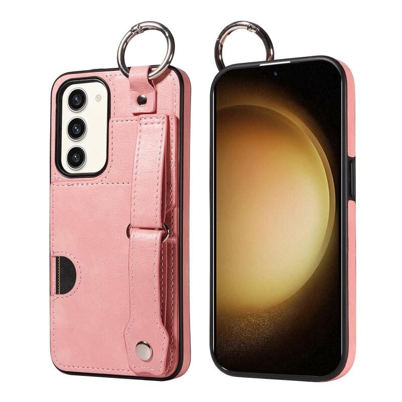Για Samsung Galaxy S23 + 5G μοσχάρι υφή καρπού κάρτα υποδοχή δαχτυλίδι υπόθεση τηλεφώνου (ροζ)