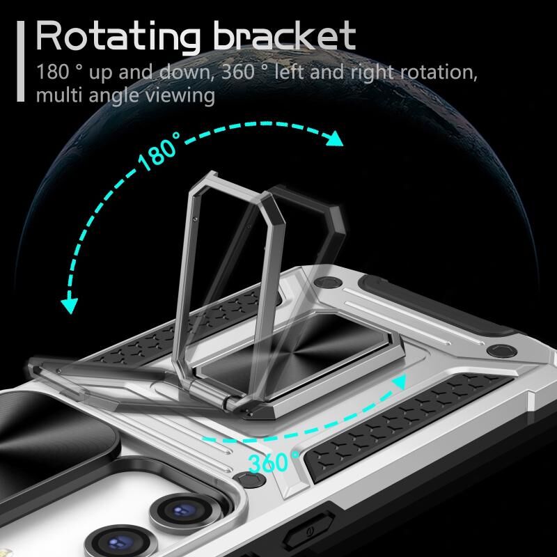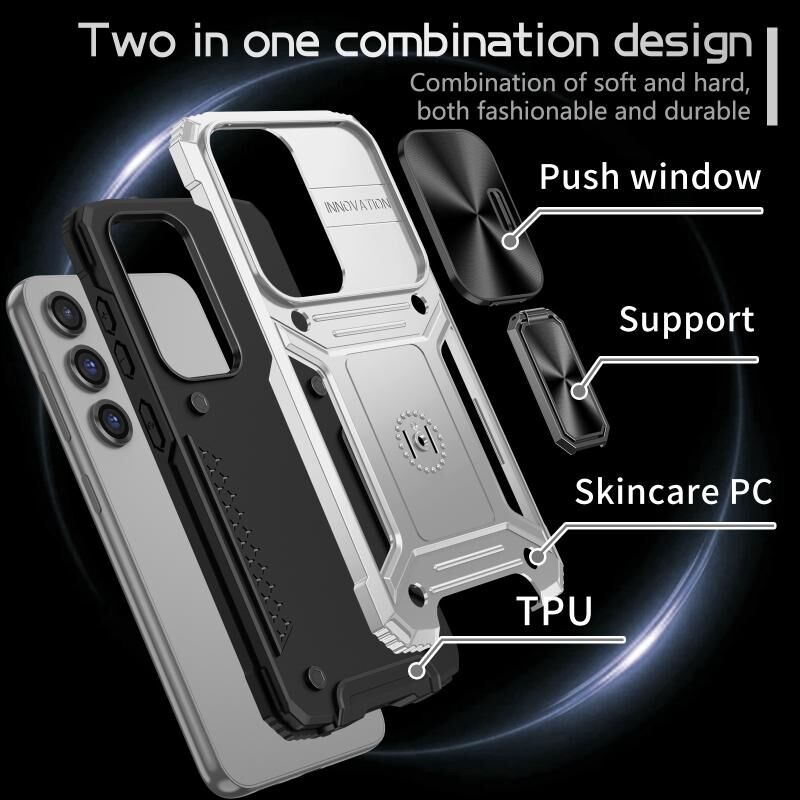 Για Samsung Galaxy S23 5G Camshield ρομπότ TPU υβριδική θήκη τηλεφώνου PC (ασημί)