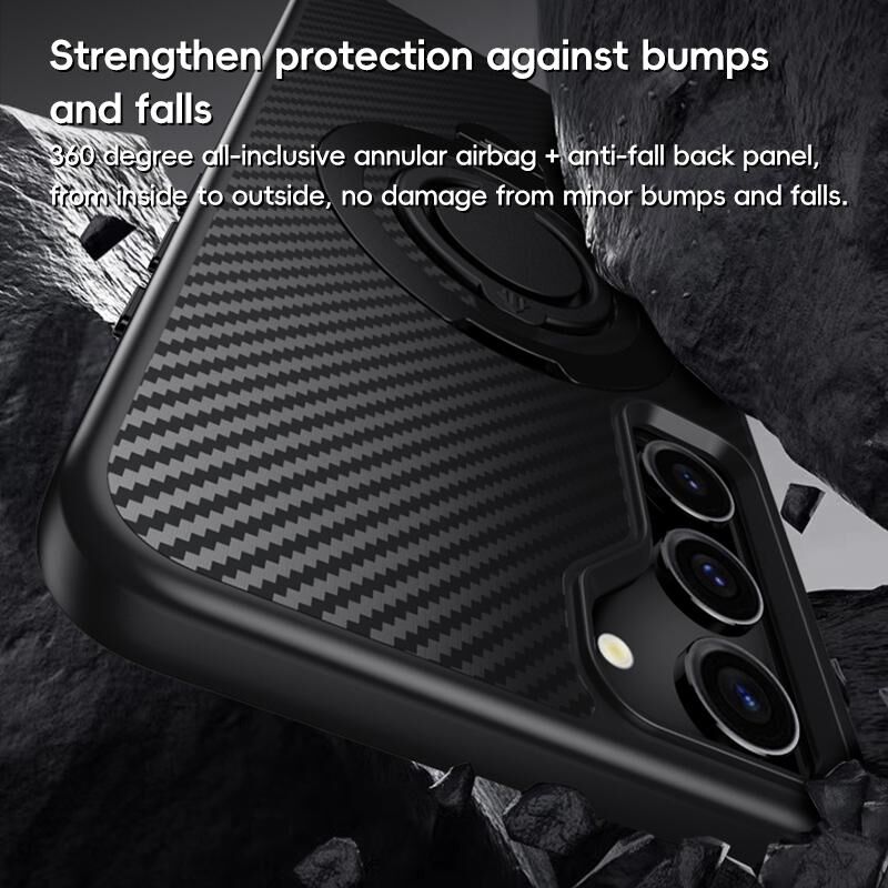 Θήκη τηλεφώνου Samsung Galaxy S23+ 5G από ανθρακονήματα με MagSafe και περιστρεφόμενη βάση 360 μοιρών (Μαύρο Γκρι)