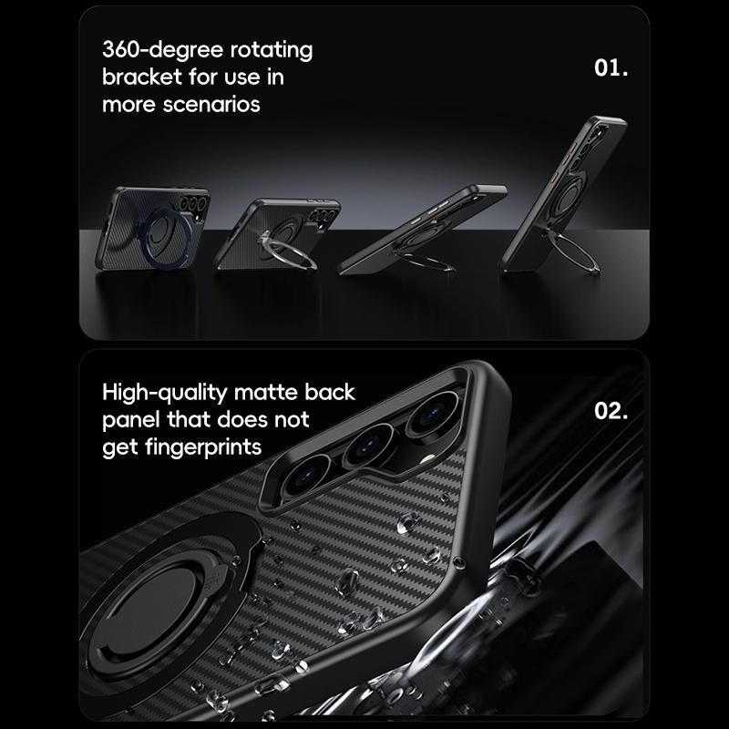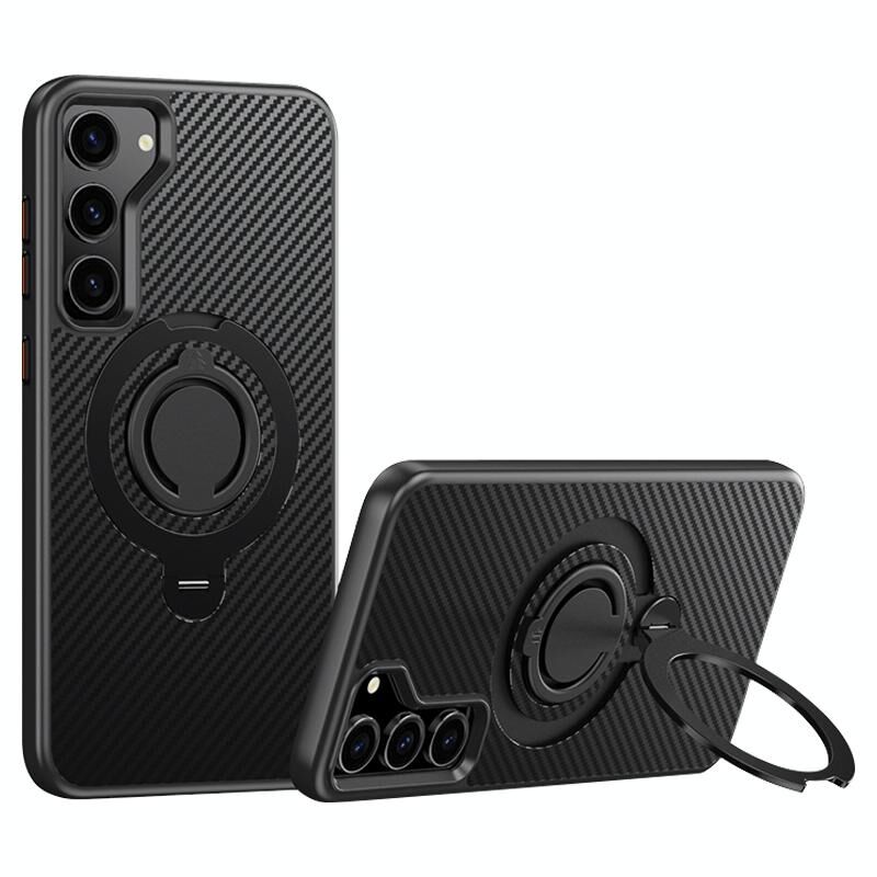 Θήκη τηλεφώνου Samsung Galaxy S23+ 5G από ανθρακονήματα με MagSafe και περιστρεφόμενη βάση 360 μοιρών (Μαύρο Γκρι)