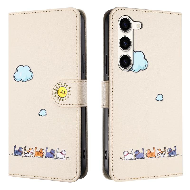 Θήκη τηλεφώνου Samsung Galaxy S23 5G από δέρμα με χαριτωμένα σχέδια γάτας (Κόκκινο)