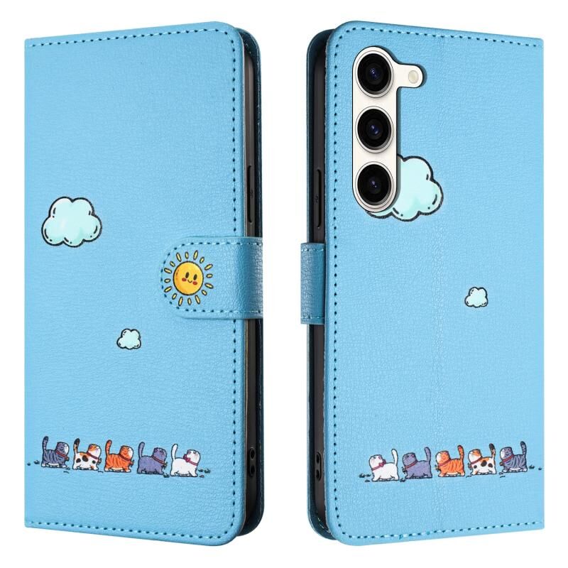 Θήκη τηλεφώνου Samsung Galaxy S23 5G από δέρμα με χαριτωμένα σχέδια γάτας (Κόκκινο)