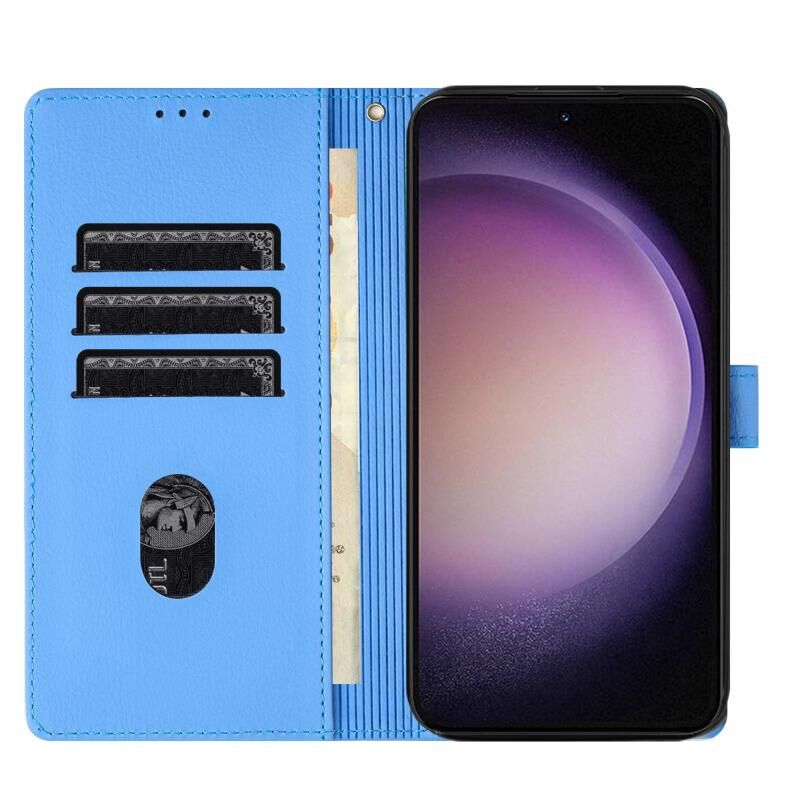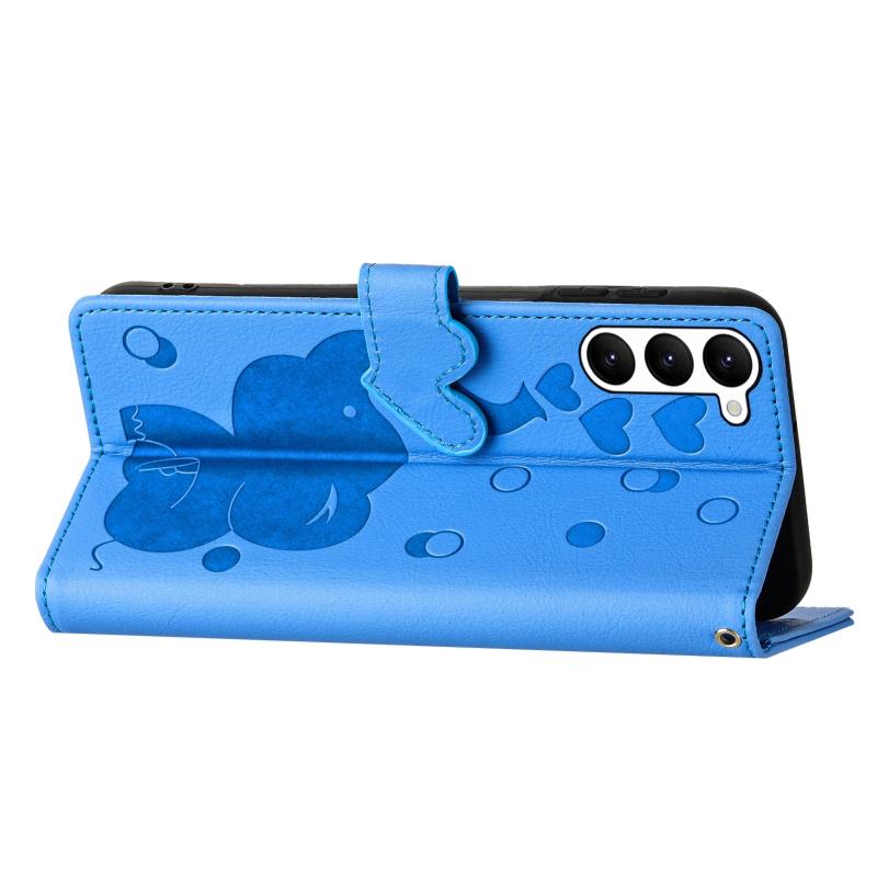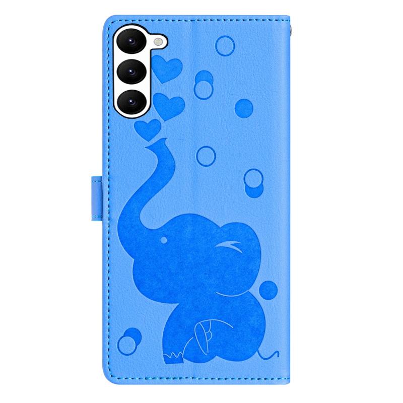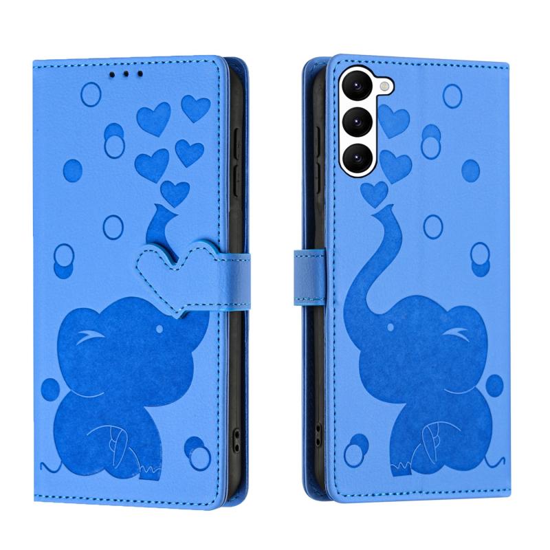 For Samsung Galaxy S23 5G Cartoon Elephant Embossed Leather Phone Case(Blue)