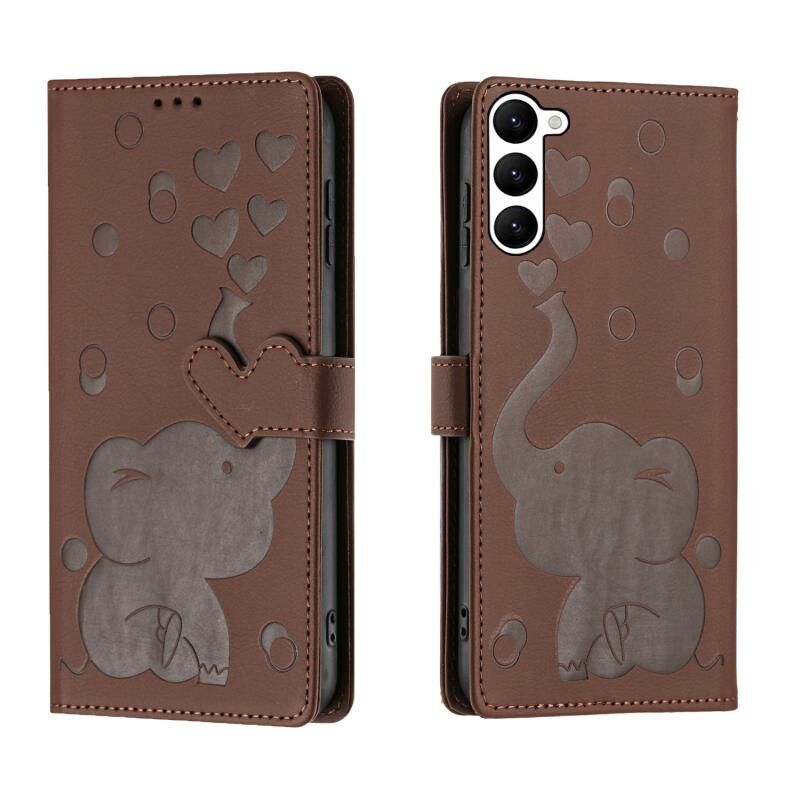 For Samsung Galaxy S23 5G Cartoon Elephant Embossed Leather Phone Case(Brown)