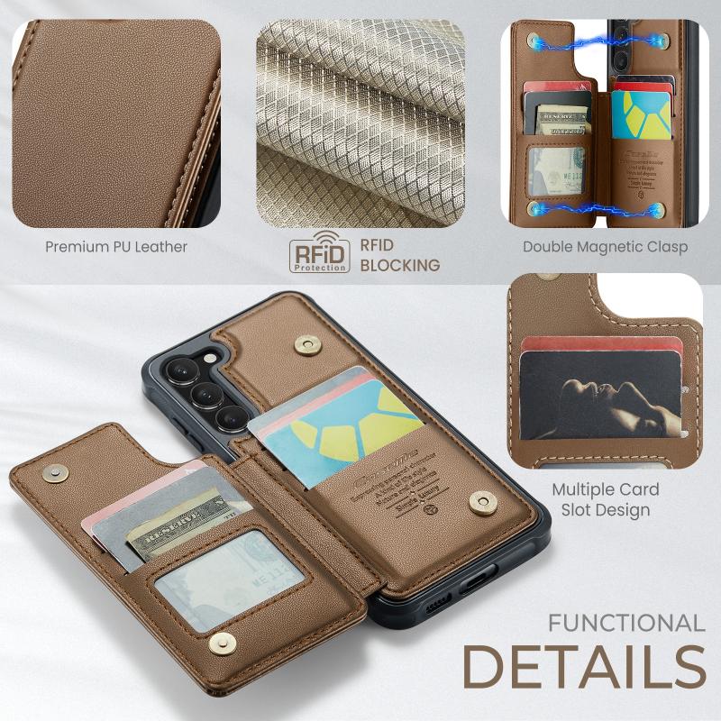 For Samsung Galaxy S23+ 5G CaseMe C22 Card Slots Holder RFID Anti-theft Phone Case(Brown) (CaseMe)