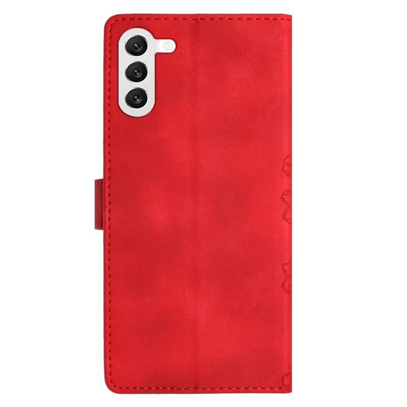 Θήκη τηλεφώνου Samsung Galaxy S23 5G Cherry Blossom Butterfly με ανάγλυφο PU υλικό αίσθησης δέρματος (Κόκκινο)