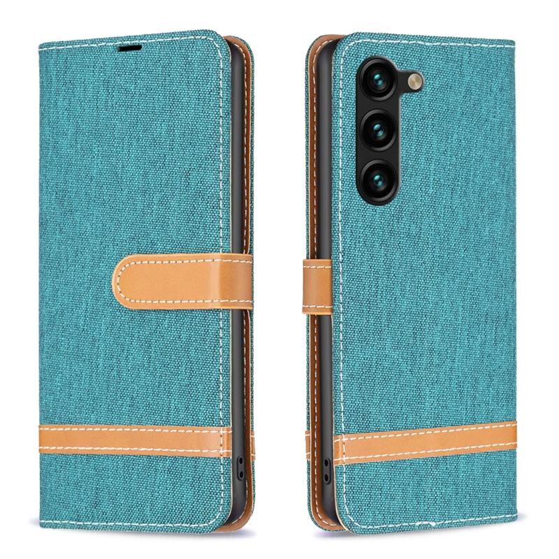 Θήκη τηλεφώνου Samsung Galaxy S23+ 5G σε χρώμα μπλε ρουάγιαλ, με υφή denim και δερμάτινη κατασκευή (Color Block). (πράσινο)