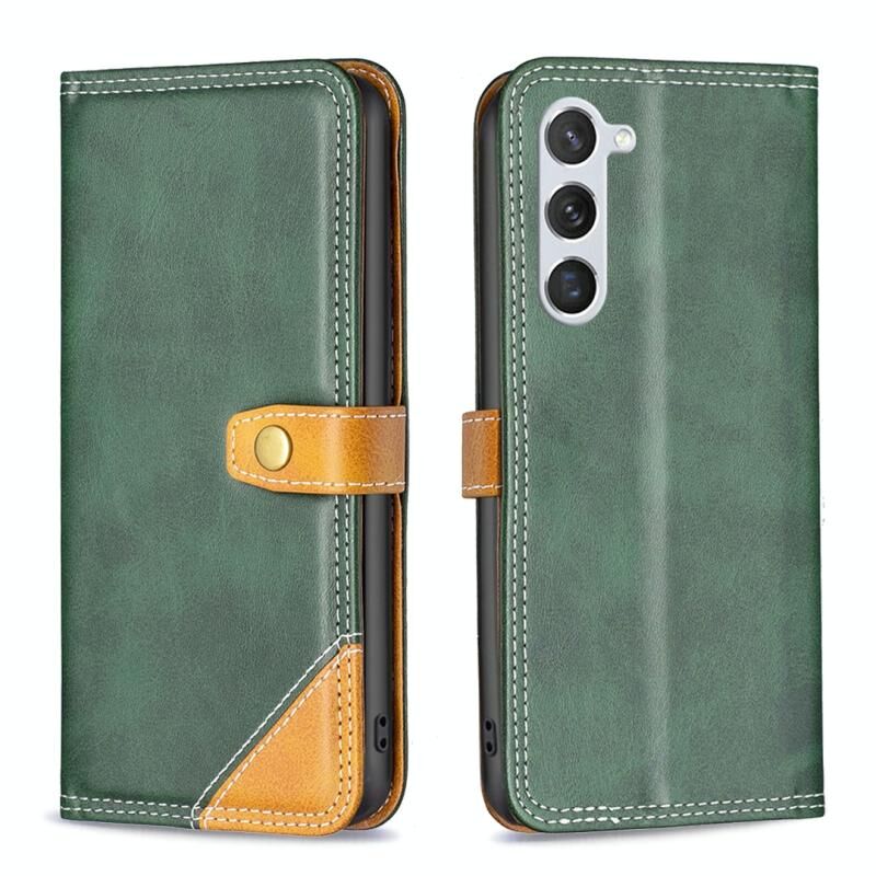 Για Samsung Galaxy S23 5G χρώμα ταιριάζει με το χρώμα διπλό νήμα ραπτικής δερμάτινη θήκη τηλεφώνου (πράσινο)