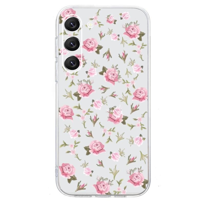 Θήκη κινητού τηλεφώνου Samsung Galaxy S23+ 5G, διαφανής TPU με έγχρωμο σχέδιο (Ροζ Λουλούδια).
