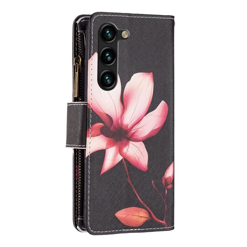 Θήκη τηλεφώνου Samsung Galaxy S23+ 5G από δέρμα με φερμουάρ και πολύχρωμο σχέδιο (Λωτός)